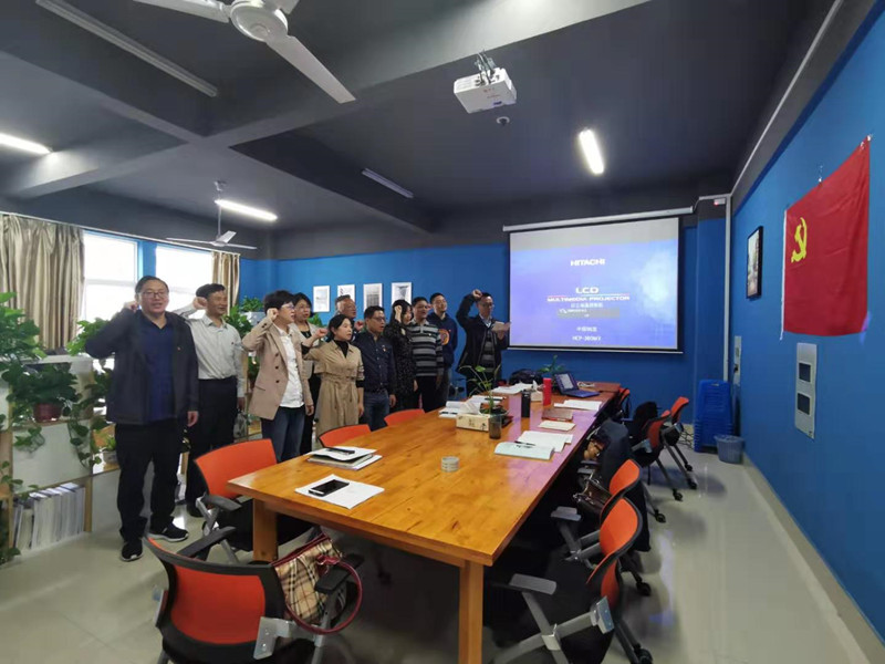 活动中,公司党委委员张九根老师为全体党员教师上题为“悟初心,担使命感悟”的党课,党课围绕我们党的“初心”和“使命”是什么,为什么要“不忘初心“、“牢记使命”,如何才能“不忘初心“、“牢记使命”三方面展开。侯瑞老师带大家共同学习了化工教育一代宗师时钧教授主要事迹。党支部书记沈捷带领大家学习了《新时代江苏高公司党支部建设“提质增效”三年行动计划》,明确了今后支部固定的党日活动日为每月第三周周三,要求各位党员同志在活动后自学周恩来、赵亚夫、王继才三位先进人物的事迹。最后,党支部书记沈捷带领支部全体党员向党旗庄重宣誓,重温入党誓词。
