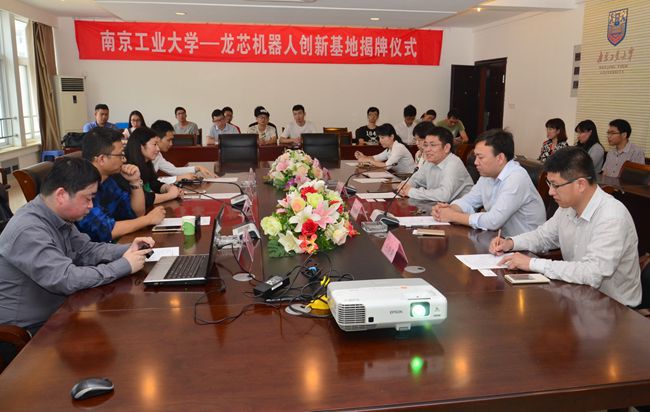 5月31日,太阳成集团tyc33455cc与南京龙众创芯电子科技有限公司举行龙芯机器人创新基地揭牌仪式。南京浦口经济开发区党工委副书记王东燕、中科创新广场总经理顾建伟、南京龙众创芯电子科技有限公司创始人石南、公司经理谢明、党委书记黄锁明,测控技术与仪器专业教师和员工代表参加了仪式。会议由黄锁明书记主持。