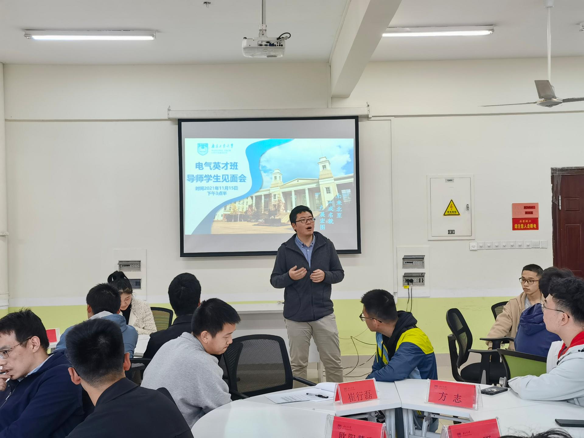 会上,辅导员范楚晗、电气系副主任兼英才班班主任崔行磊老师分别围绕英才班实施导师制与导师配备、班级构成与建设目标等方面做了详细介绍,希望同学们珍惜机会,用好资源,发挥导师制的最大作用。随后,师生就未来职业规划和期望、如何尽快适应老员工活、如何申报大创项目等展开了热烈交流、讨论。