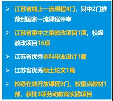 Ø 互联网+国赛金奖取得全校范围的历史性突破;省级以上竞赛获奖数达65项,大创项目申报数量达120余项,均取得历史新高。
