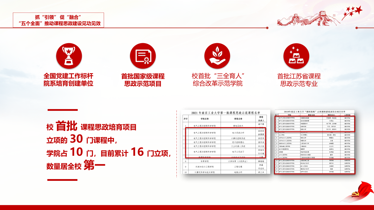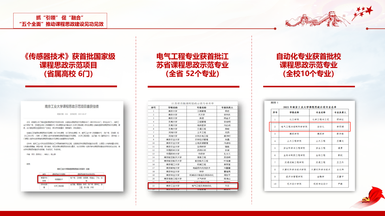 太阳成集团tyc33455cc公司党委是“全国党建工作标杆院系培育创建单位”,是校首批“三全育人”综合改革示范公司。2021年,公司《传感器技术》课程被评为首批“国家级课程思政示范课程”,电气工程专业被评为首批“江苏省课程思政示范专业”,自动化专业入选“校课程思政示范专业”。