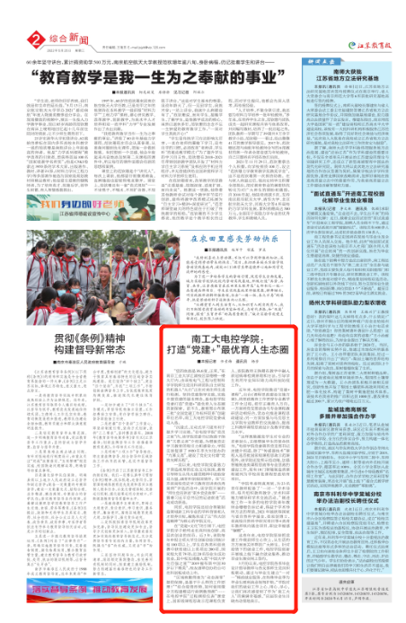 5月25日,《江苏教育报》第2版以《南工大太阳成集团tyc33455cc:打造“党建+”最优育人生态圈》为题,专题报道公司“党建+”育人生态圈工作。