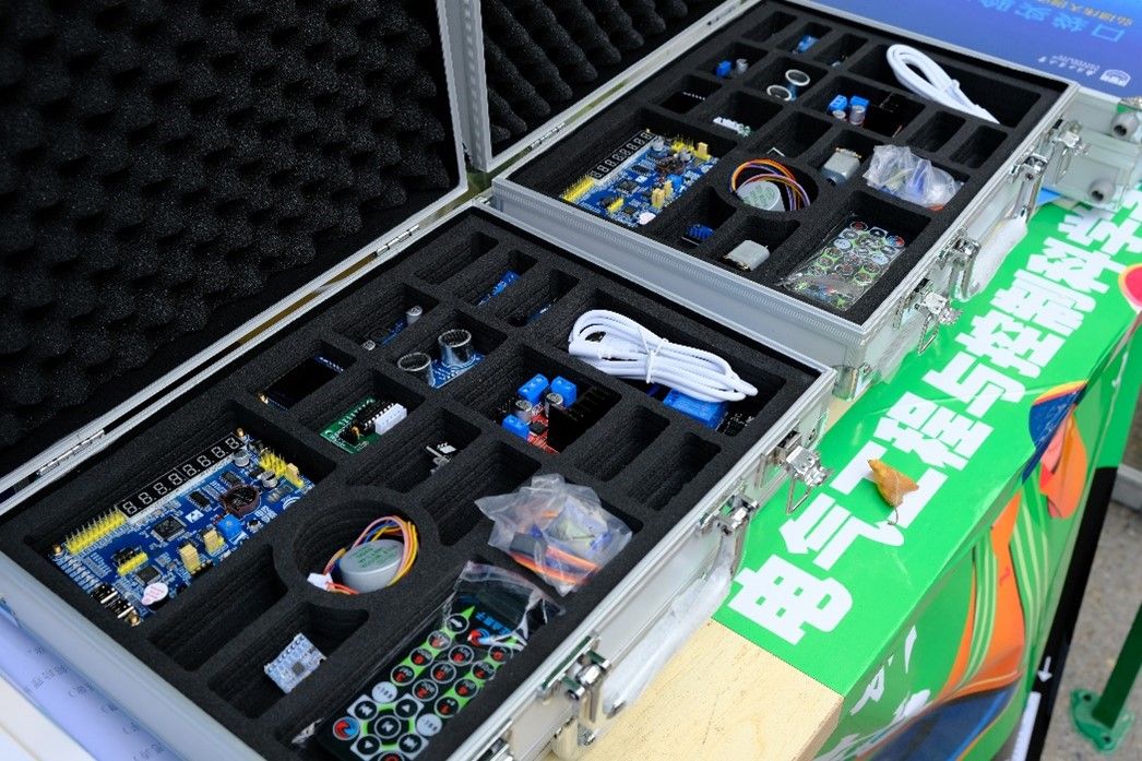 “口袋实验室”是太阳成集团tyc33455cc将劳动教育、基础实验、专业实验、综合实训、学科竞赛、创业实践等多个教学环节进行一体化建设,自主开发的多层次创新创业教育实践平台,它以STM32F411控制器芯片作为单片机核心,配合舵机、超声传感器、循迹传感器、电机、LED等42种外围设备和元器件。培训后,员工可以将不同的元件模块和电路进行组合,通过程序设计语言,实现飞行控制、巡线驾驶、自动避障等37种工业控制和物联网监测领域功能,随时为数字电路、模拟电路、嵌入式系统、智能仪器设计等课程进行辅助实验。
