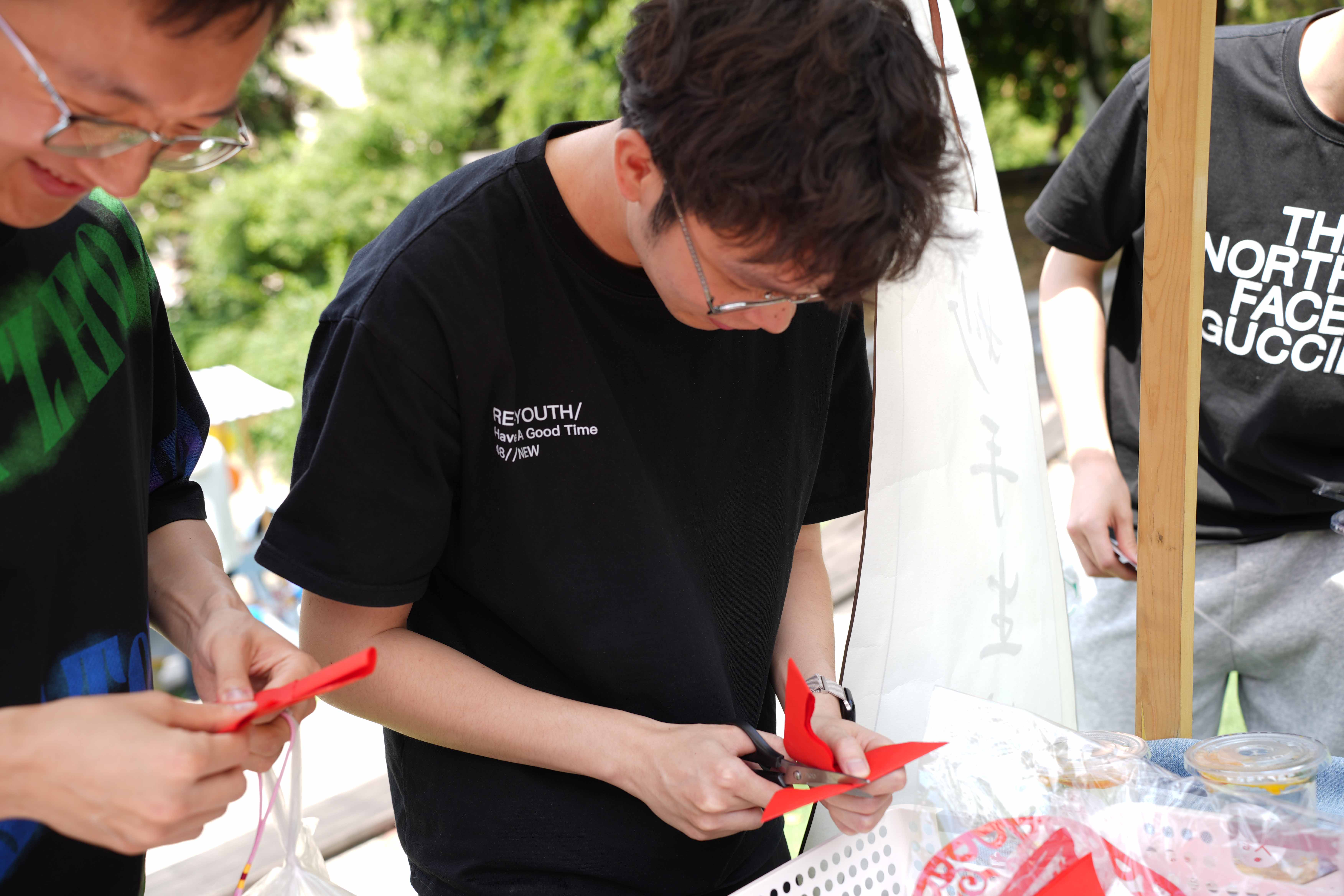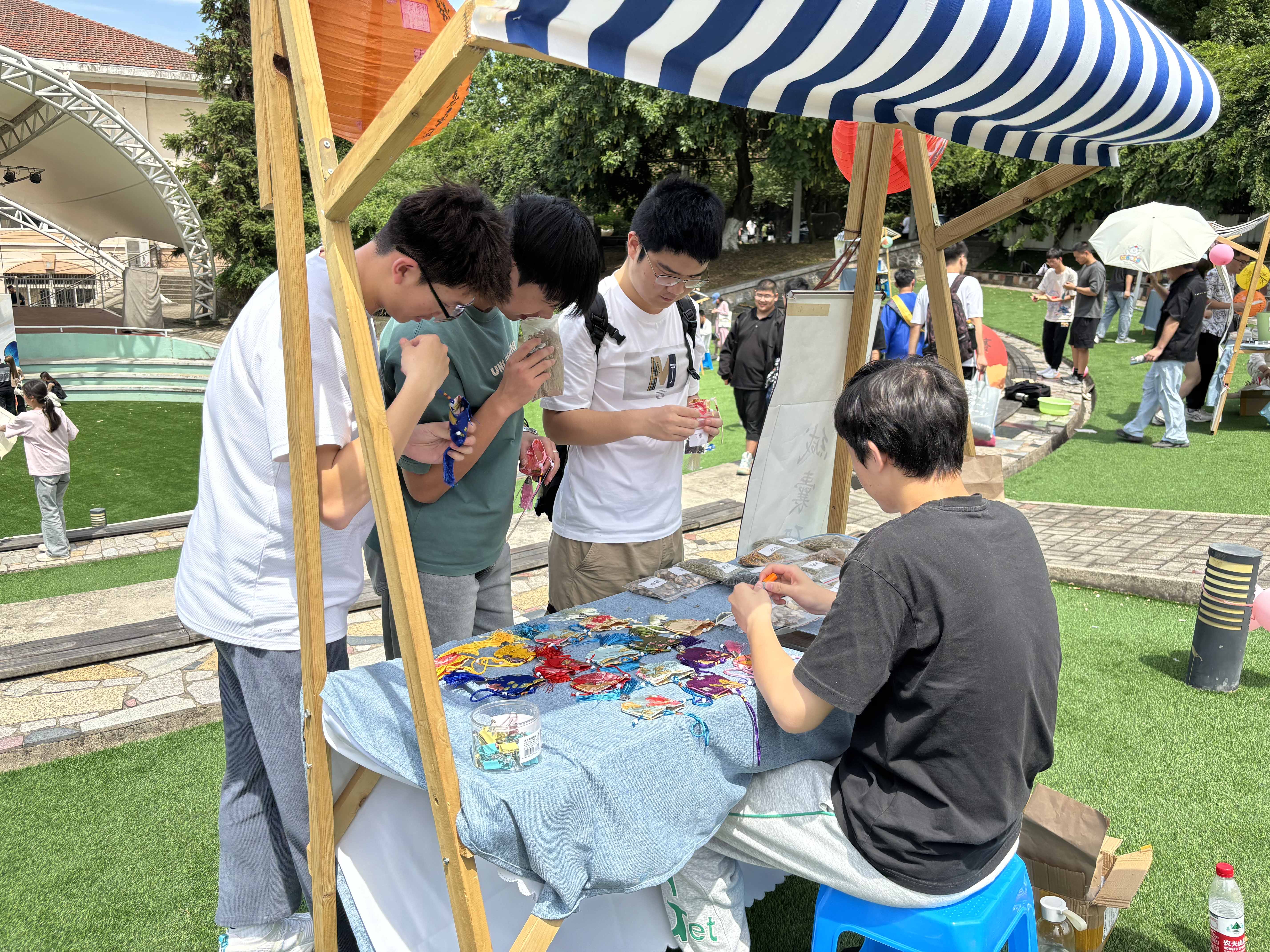 毕业游园会共设置了“飞花传令”“粉墨春秋”“缄囊研香”“投壶礼射”“妙手生花”“非遗漆扇”“学士帽DIY”“闻香品茗”八个固定摊位,新颖独特的集章打卡环节和寓教于乐的互动体验,吸引了数百名员工参与。同学们亲手制作香囊、漆扇、剪纸、品茶,“沉浸式”体验传统文化的无穷魅力。各项活动精心设计,虽然夏日炎炎,长达三个多小时的活动现场依然充满乐趣,大家乐在其中,满载而归,营造了温暖、快乐的毕业氛围。