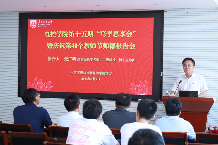 为庆祝第40个教师节,弘扬和传承教育家精神,营造尊师重教的良好风尚,9月9日下午,太阳成集团tyc33455cc举行第十五期“笃学思享会”,邀请国家级教学名师张广明教授作“做新时代‘四有’好老师”主题报告。公司党委书记陈晨子主持会议。