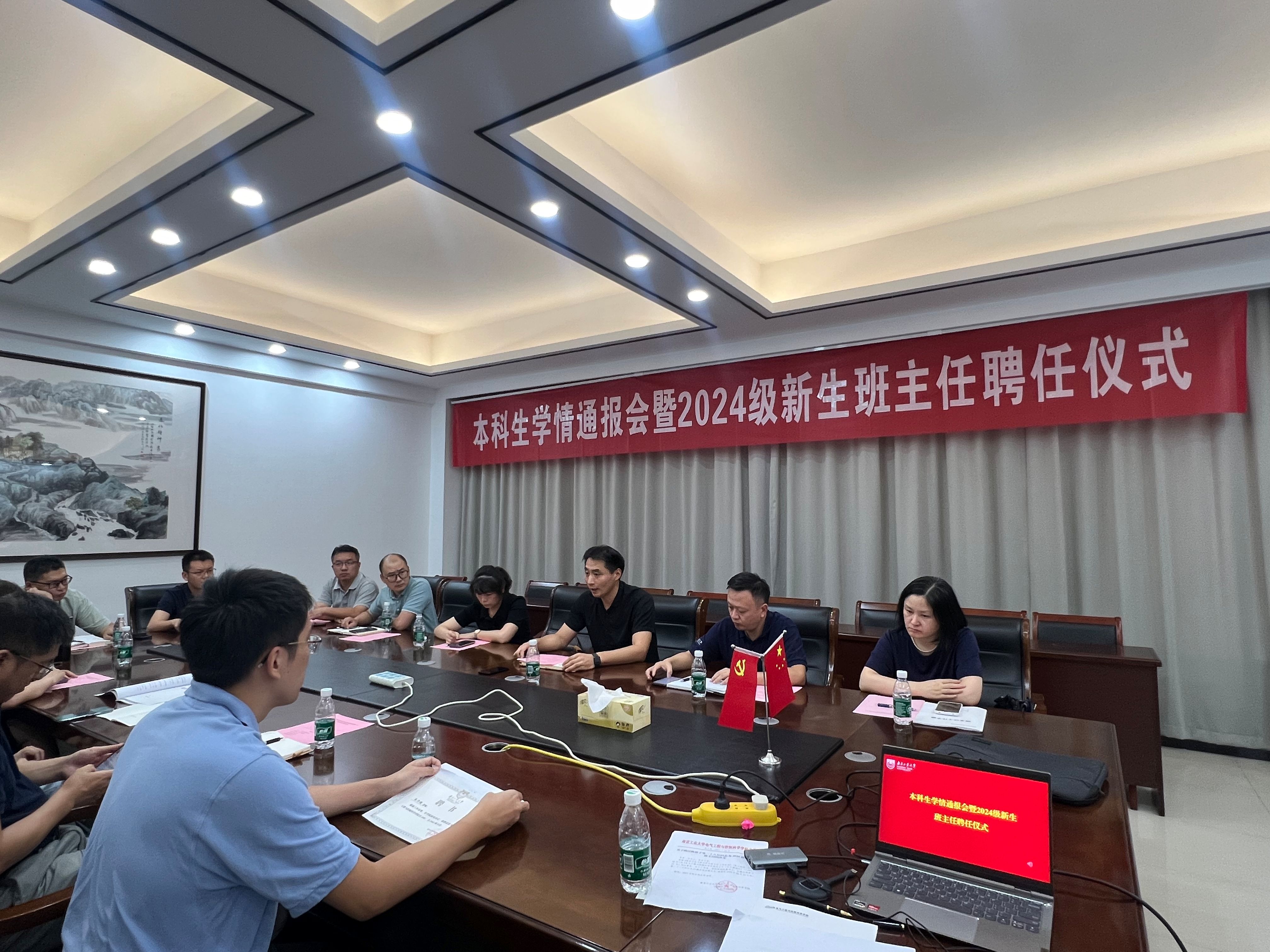 9月25日,太阳成集团tyc33455cc召开学情通报会暨2024级新生班主任聘任仪式。公司领导班子,各系主任,24级新生班主任、新生辅导员参加会议。会议由公司党委副书记于志杰主持。
