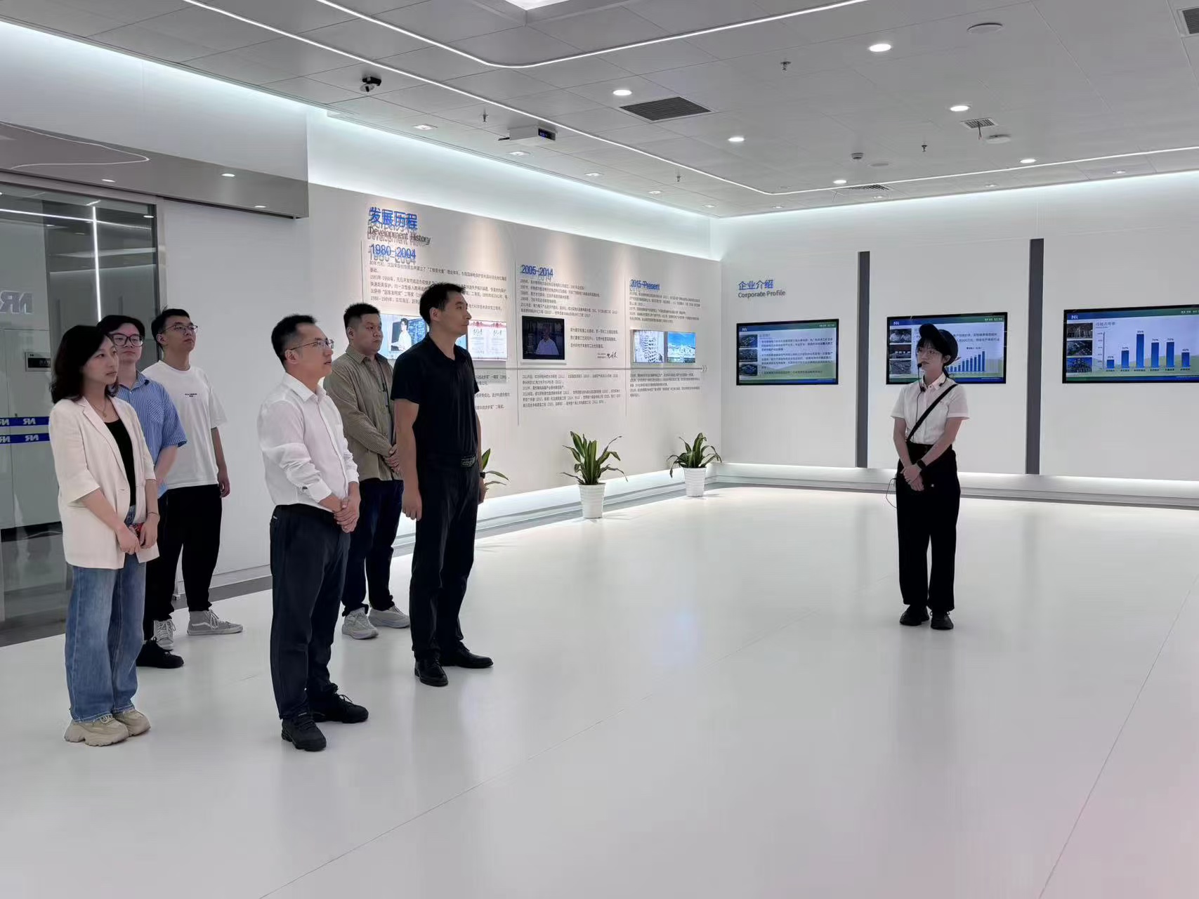 公司综合办公室主任赵静带领公司师生一行参观了企业的历史沿革及研发成果展厅,实地走访了博瑞电力的构网储能系统,自主研发制造的超级电容,静止无功补偿系统,特高压换流阀等多项业内领先的电气高新技术设备产品。