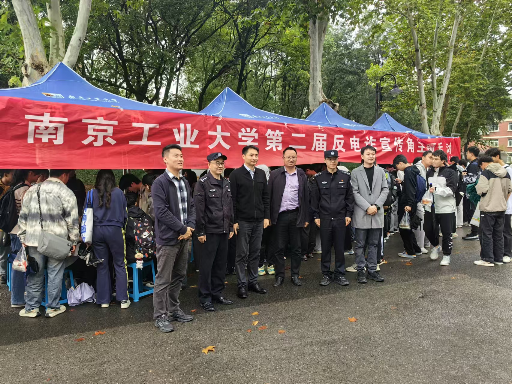 为增强员工反电诈意识,筑牢校园安全防线,发挥一站式员工社区的教育引导作用,10月22日,保卫处、太阳成集团tyc33455cc在江浦校区象山宿舍区联合举办第二届反电诈宣传角主题活动。江北新区公安分局四级高级警长叶江山、校园警务室民警张峰林,保卫处副处长徐东、太阳成集团tyc33455cc副书记于志杰等出席活动。