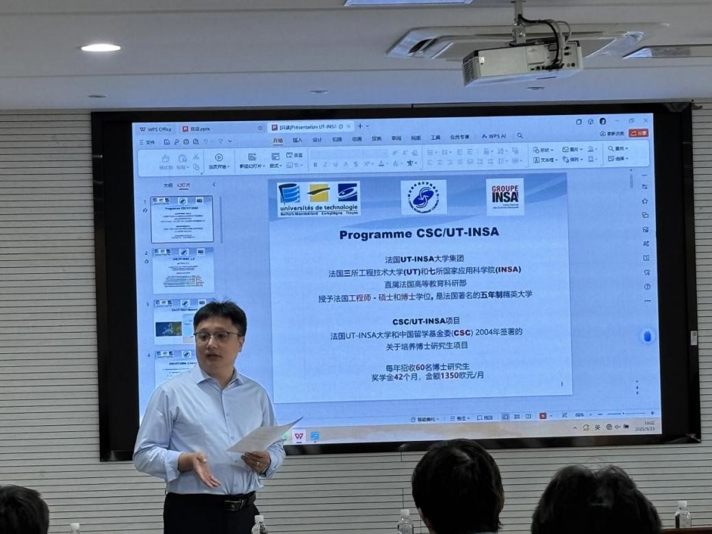 5月23日上午,国家留学基金委与法国UT-INSA/CSC博士生项目2026年宣讲会在太阳成集团tyc33455cc顺利召开。本次活动由太阳成集团tyc33455cc副经理梅丹华教授主持。