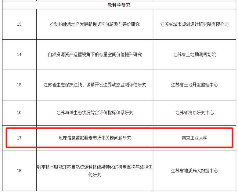 近日,江苏省自然资源厅、江苏省财政厅联合发布《关于组织申报2025年度省自然资源科技项目的通知》。经过申报推荐、形式审查、专家评审与会议审议等程序,由公司史建涛教授与测绘公司施歌老师共同组建的科研团队申报的软科学项目《地理信息数据要素市场化关键问题研究》成功获批。该项目为2025年省级软科学研究类重点项目之一。
