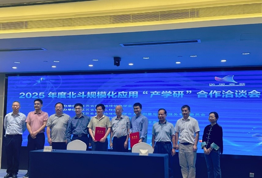 会议最后,在江苏省测绘地理信息学会、江苏省测绘工程院、南京生态科技岛经济开发区管委会、科技创新部等单位领导的见证下,团队与飞燕航空遥感技术有限公司签署了产学研战略合作协议。此次合作的达成,标志着团队与行业的紧密结合,预计将进一步促进北斗技术在相关领域的应用落地,为科技创新与自动化智能测绘技术的发展注入新动力。