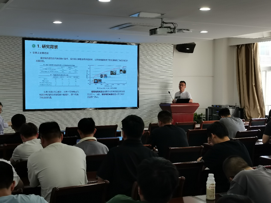 祝子冲老师的报告题为《高功率密度FSCW-HSPMM的电磁设计及高效热管理技术研究》,报告从各类电驱动系统技术需求出发,分析了现有驱动电机的功率密度和热管理系统的技术瓶颈,探讨了FSCW-HSPMM的电磁设计模型和新型热管理系统建模方法,揭示了该研究在下一代高功率密度电机中的重要意义。