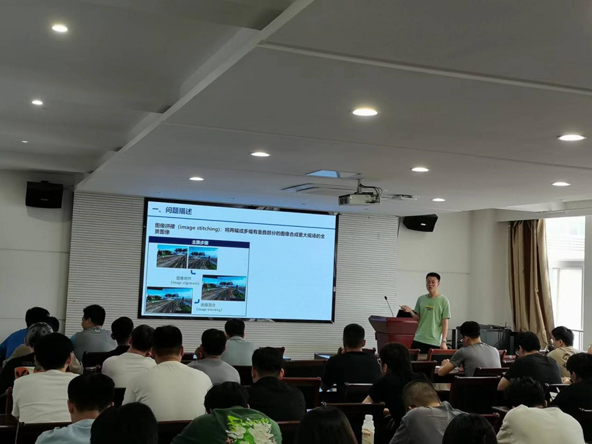 张智浩老师的报告题目为《基于密集匹配的大视差图像拼接方法研究》,从大视差图像拼接问题出发,回顾了特征点匹配、变换模型估计和图像混合三个图像拼接关键步骤的研究现状,并介绍了一种基于密集匹配的多变换模型参数估计和缝合线估计的图像拼接方法。
