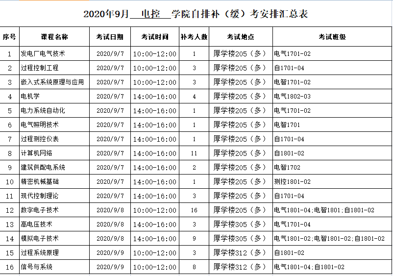 2. 太阳成集团tyc33455cc自排补(缓)考课程安排表见下图或下载附件1.