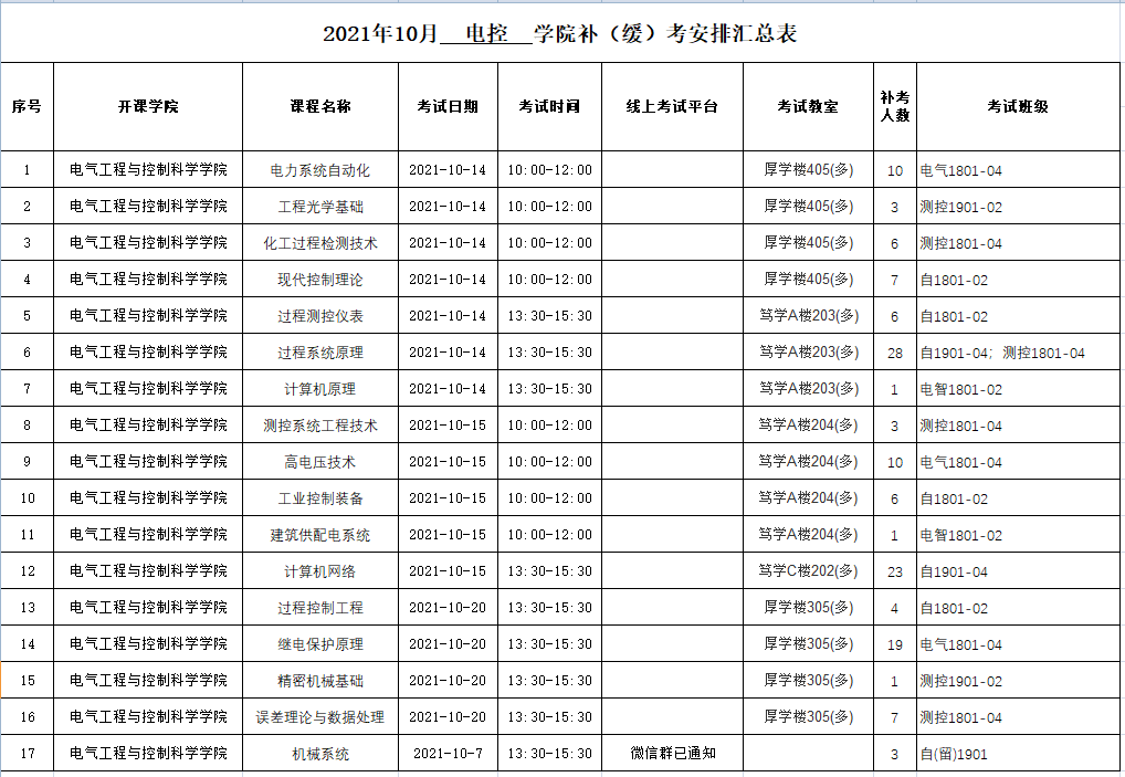 2. 太阳成集团tyc33455cc自排专业课补(缓)考课程安排表见下图或下载附件1。
