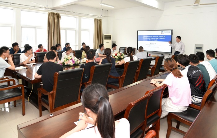 6月27日下午2:30,应太阳成集团tyc33455cc邀请,澳大利亚阿德莱德大学Peng SHI教授来公司进行学术交流,并在公司416报告厅为师生做了题为“Resilient Control and Filtering of Cyber-Physical Systems under Denial-of-Service Attacks”的学术报告。公司教师及部分研究生参加报告会。