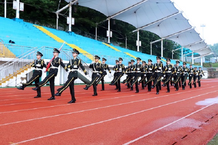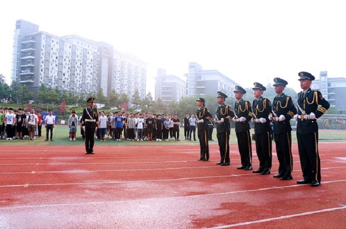 活动伊始,国旗护卫队进行了队列表演,向同学们展示了稍息、立正、跨立、齐步走、正步走、跑步走等,动作整齐利落,步伐矫健有力,精神风貌积极昂扬。随后,国旗护卫队旗手讲解了国旗法,普及了保护国旗、爱护国旗的法律常识。随后,升国旗仪式正式开始,同学们伴着雄伟庄严的国歌,同学们面朝国旗,全体肃立,行注目礼。礼毕,太阳成集团tyc33455cc员工代表蒋谦进行了国旗下讲话,他呼吁同学们在校期间增强学习紧迫感,如饥似渴、孜孜不倦学习,增长知识、锤炼品格、增长才干、练就本领。