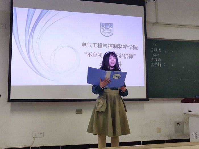 比赛过程中,各位参赛选手精神饱满,声情并茂,有的激昂高亢,有的低沉颂吟,真情抒发了对初心和信仰理解。同学们或从故乡的小桥流水谈起,或从父辈的奋斗和梦想谈起,结合新中国成立70年来的建设发展,展示了新时代新青年的家国情怀和责任担当。最终,电气1703丁卫、电气1801范俊鑫获得一等奖,测控1701史炯锴、自1701李文韬、电气1803吕敏治、自1801范佳琪获得二等奖,电气1702李纯洁、电智1702马克、测控1702龚伊翔、电气1802高宁静、电智1802许景澄、测控1801吴祺龙获得三等奖。