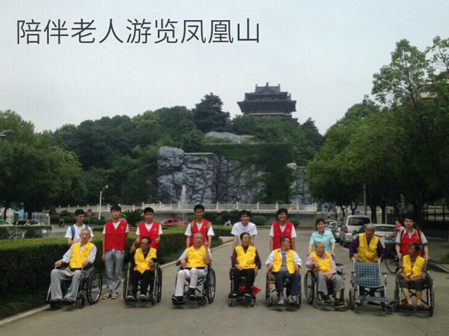 “关爱弱势群体”志愿服务践行团以养老院老人“易进难出”为关注重点,小组成员来到银杏树智慧养老服务中心,在与经理充分沟通,得到经理的支持后,将十几名老人用轮椅带出养老院,游览了凤凰台、凤凰山瀑布、参观了地铁十号线,成员们还给老人们讲了这几年江浦的发展变化,老人们都露出了开心的笑容。