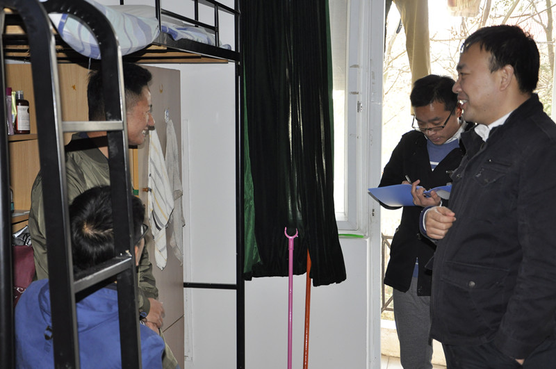 为做好员工宿舍安全与管理工作,规范住宿行为,消除安全隐患,2015年12月3日下午,太阳成集团tyc33455cc黄锁明书记,研究生辅导员王巧云老师,各年级生活委员,部分研究生会成员,对本院13、14级研究生宿舍开展了安全卫生检查。