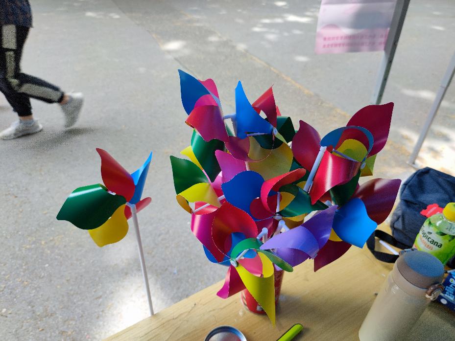 活动现场,工作人员在卖出手工制作风车的同时,为购买者准备了明信片,让同学们在购买风车的同时,在明信片上写下对语言障碍以及自闭症儿童的祝福。在工作人员的努力和同学们的热情参与下,活动累计卖出大小风车二百余只,收到了手写明信片三十余张。