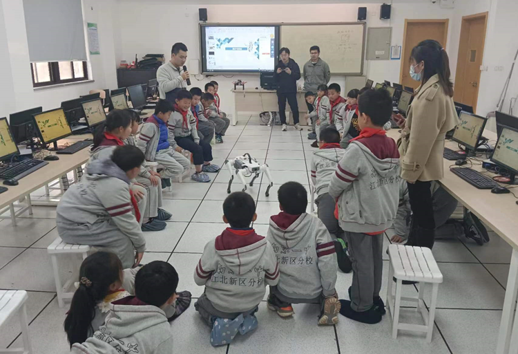 支部党员为同学们带去自己实验室研发的手势控制小车和多旋翼无人机,还有阿尔法机械狗进行展示,迅速激发了同学们的好奇心。随后,党支部副书记吴陵锐向同学们讲解机器人知识,介绍了不同类型机器人的组成和原理,彭庆澳、刘建飞、黄涛分组指导员工们实际操控机器人,亲身体验科技的神奇和科学的乐趣。同学们聚精会神的聆听,争先恐后地参与动手操作,表现出强烈的好奇心和求知欲。活动以生动有趣的方式展示了自动化及控制领域的科学知识,拓宽了员工们的视野,激发了他们对科学的探索兴趣。