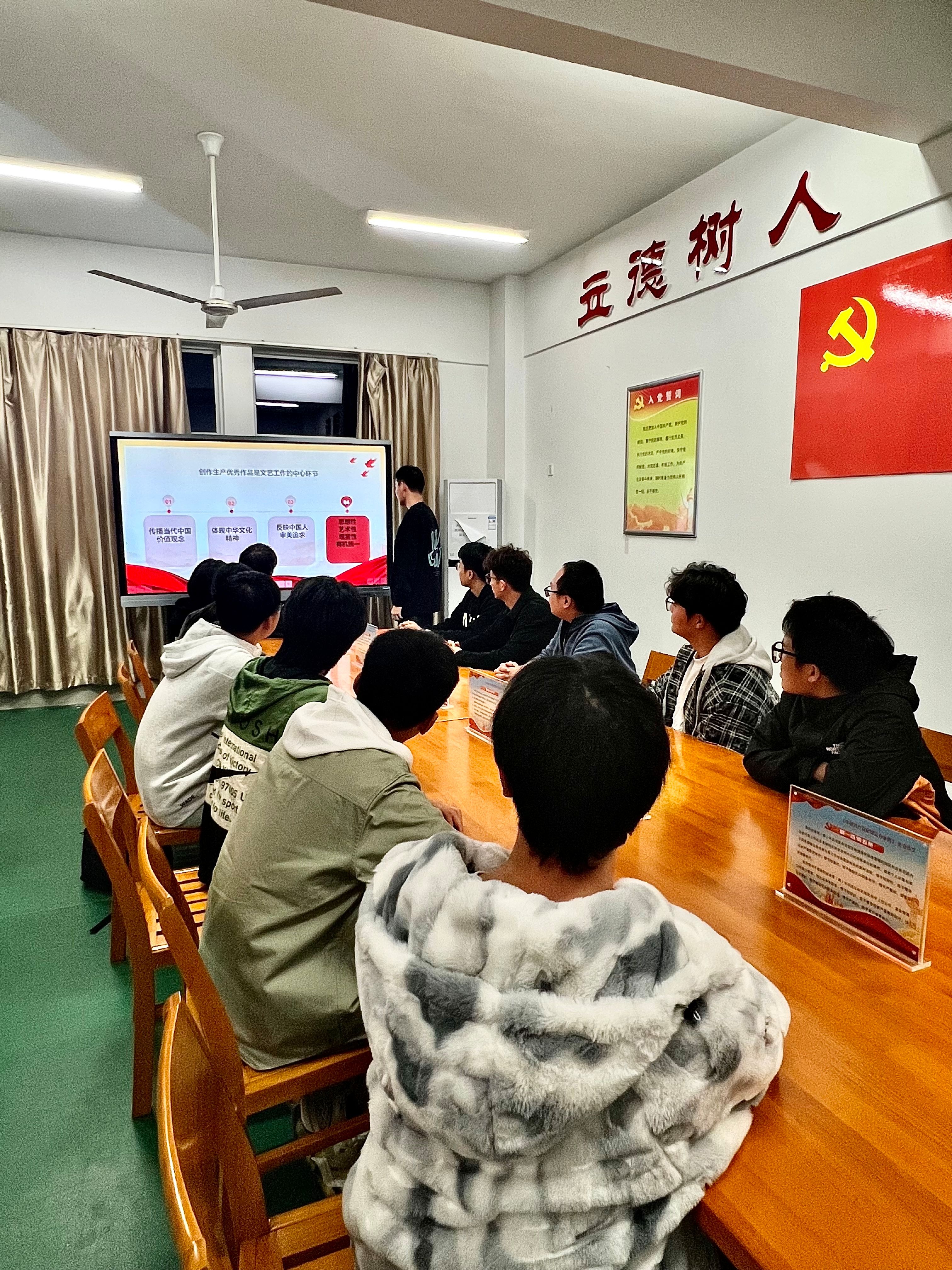 会上,周默同学从理论出发,强调了文艺事业和文艺战线是党和人民的重要组成部分;高筱然同学从现实出发,鼓励大家在学术和艺术方面坚持“百花齐放,百家争鸣”的方针,营造积极健康的校园文化环境;刘皓宇同学重点阐述了当代中国价值观念和中华文化精神。现场员工对文艺工作发展路径进行了深入探讨,表达了对文艺创新的美好愿景。