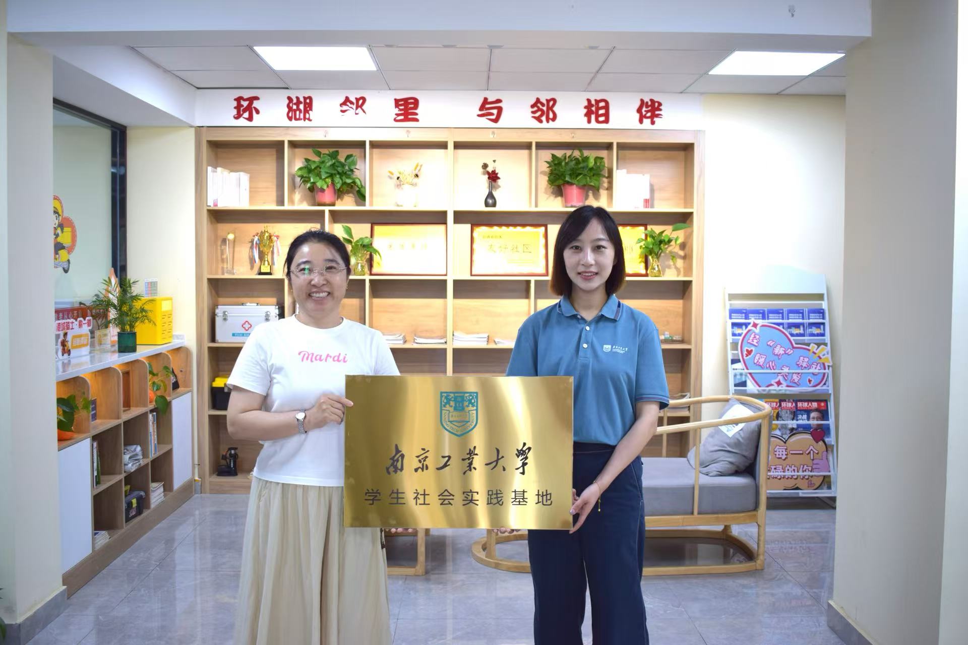 实践团一行还走访调研了环湖社区。公司团委副书记刘紫寒与环湖社区党委书记程岚共同签署老员工暑期社会实践基地合作协议并举行授牌仪式,为实践活动及后续校地协同育人、文化传承搭建了长效平台。