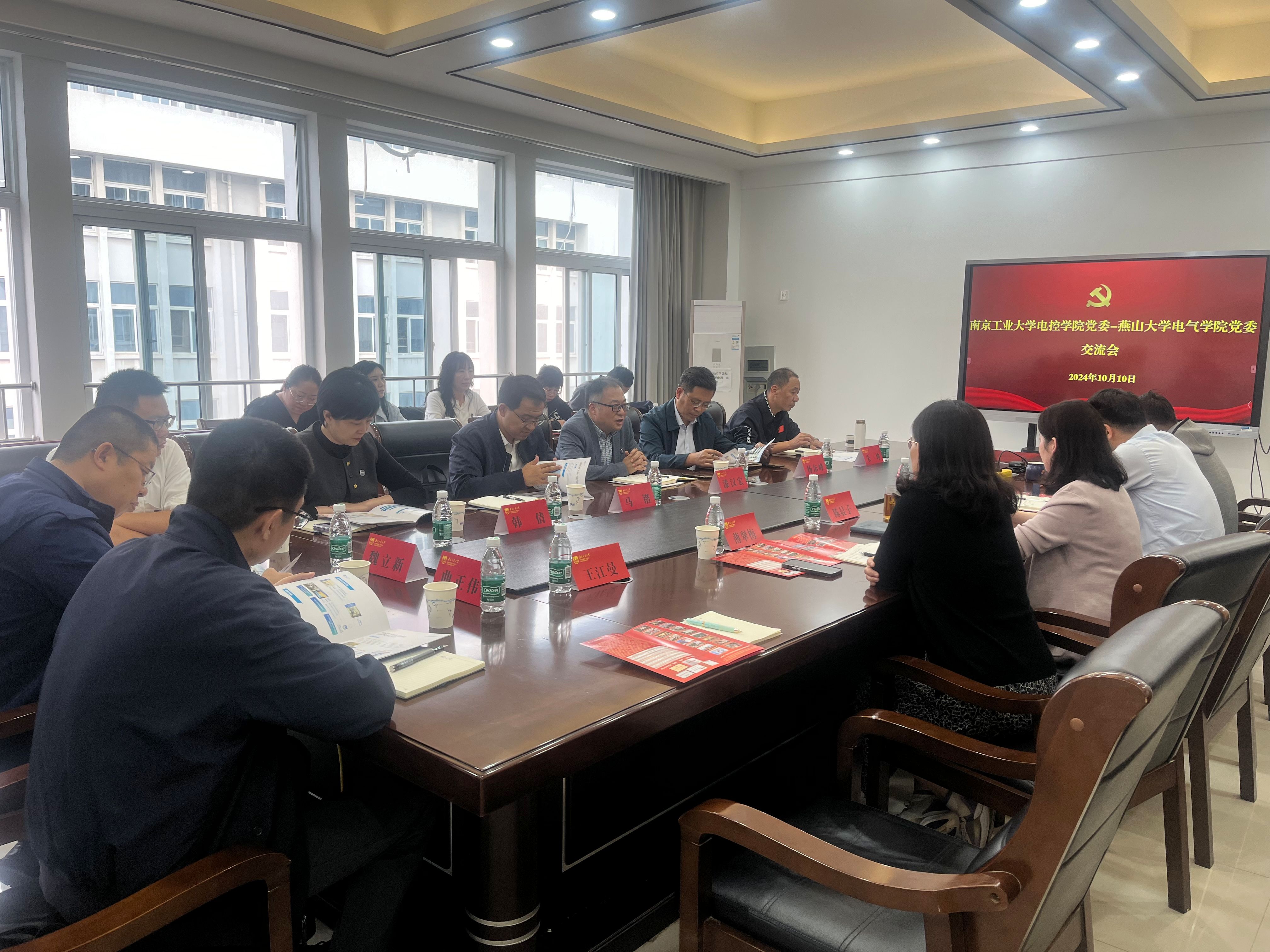 10月10日下午,燕山大学电气工程公司党委书记漆汉宏一行12人来院调研交流党建工作,公司党委书记陈晨子、副书记于志杰、副经理薄翠梅、副经理欧阳慧珉等参加座谈交流。