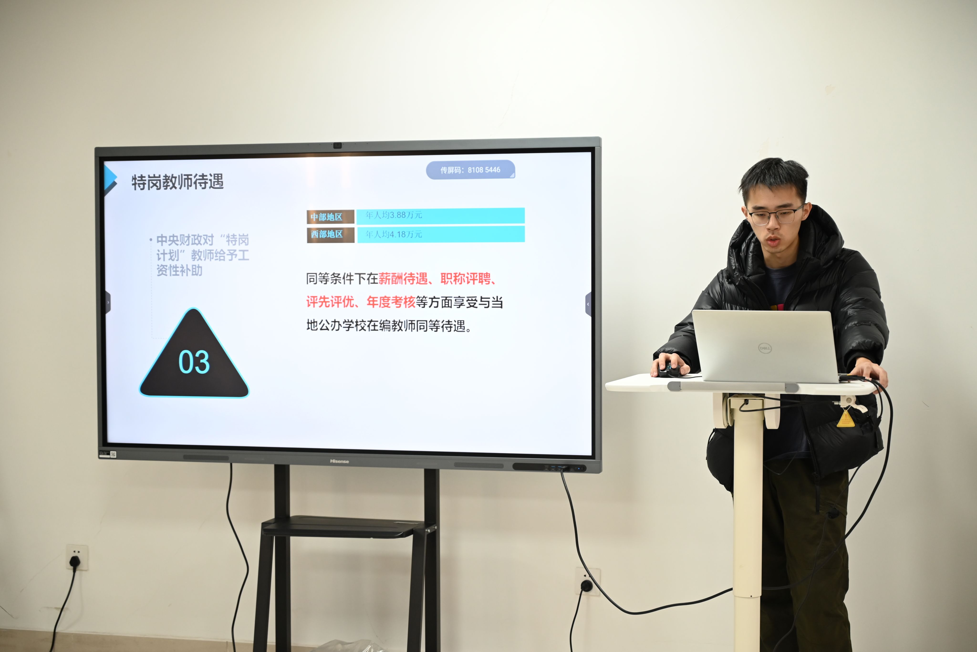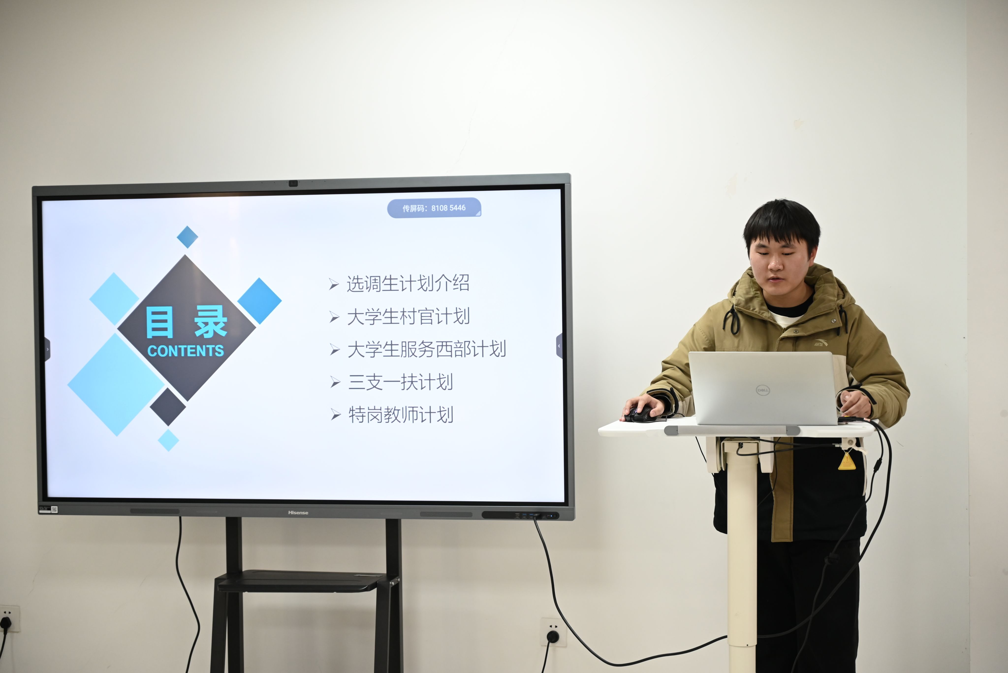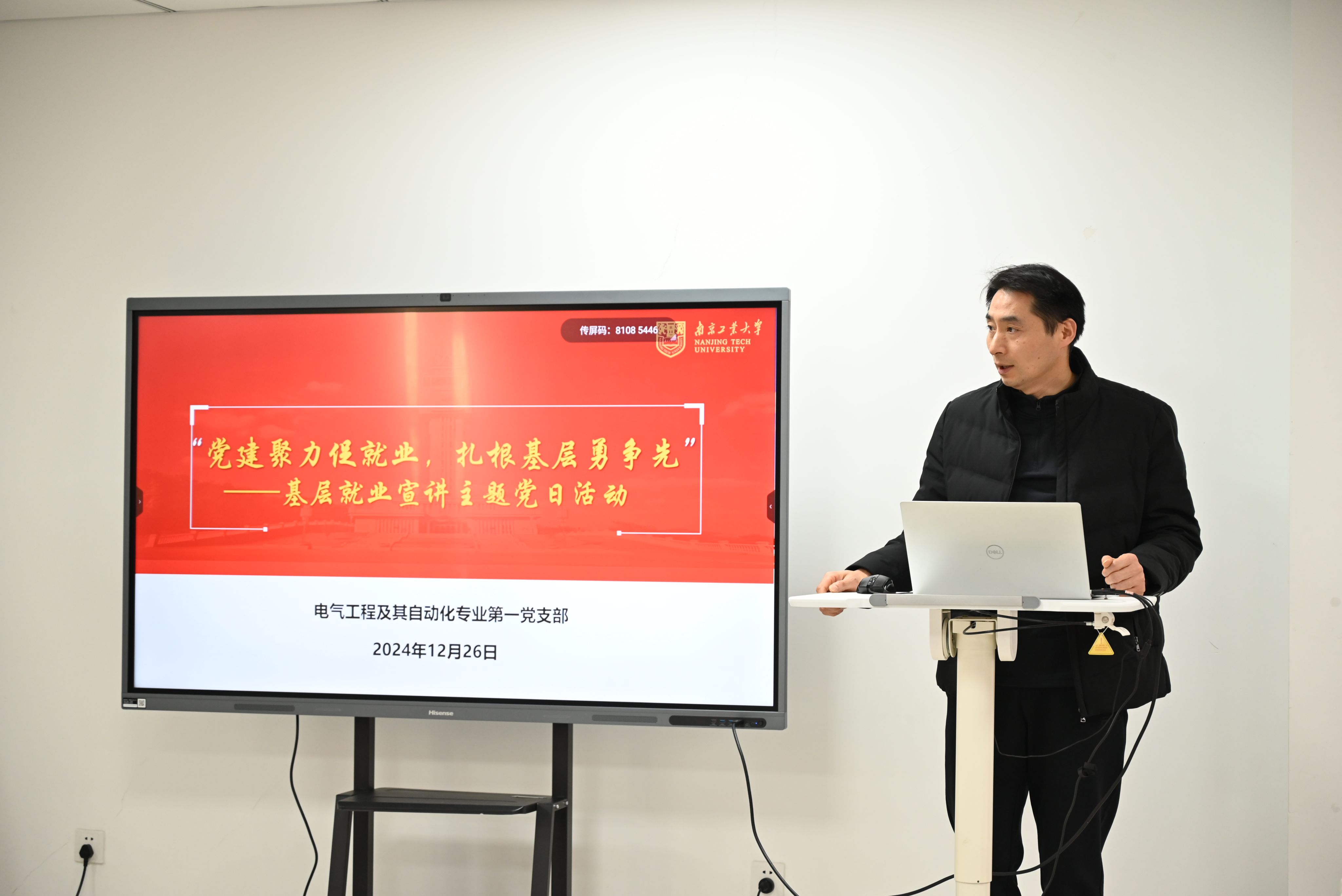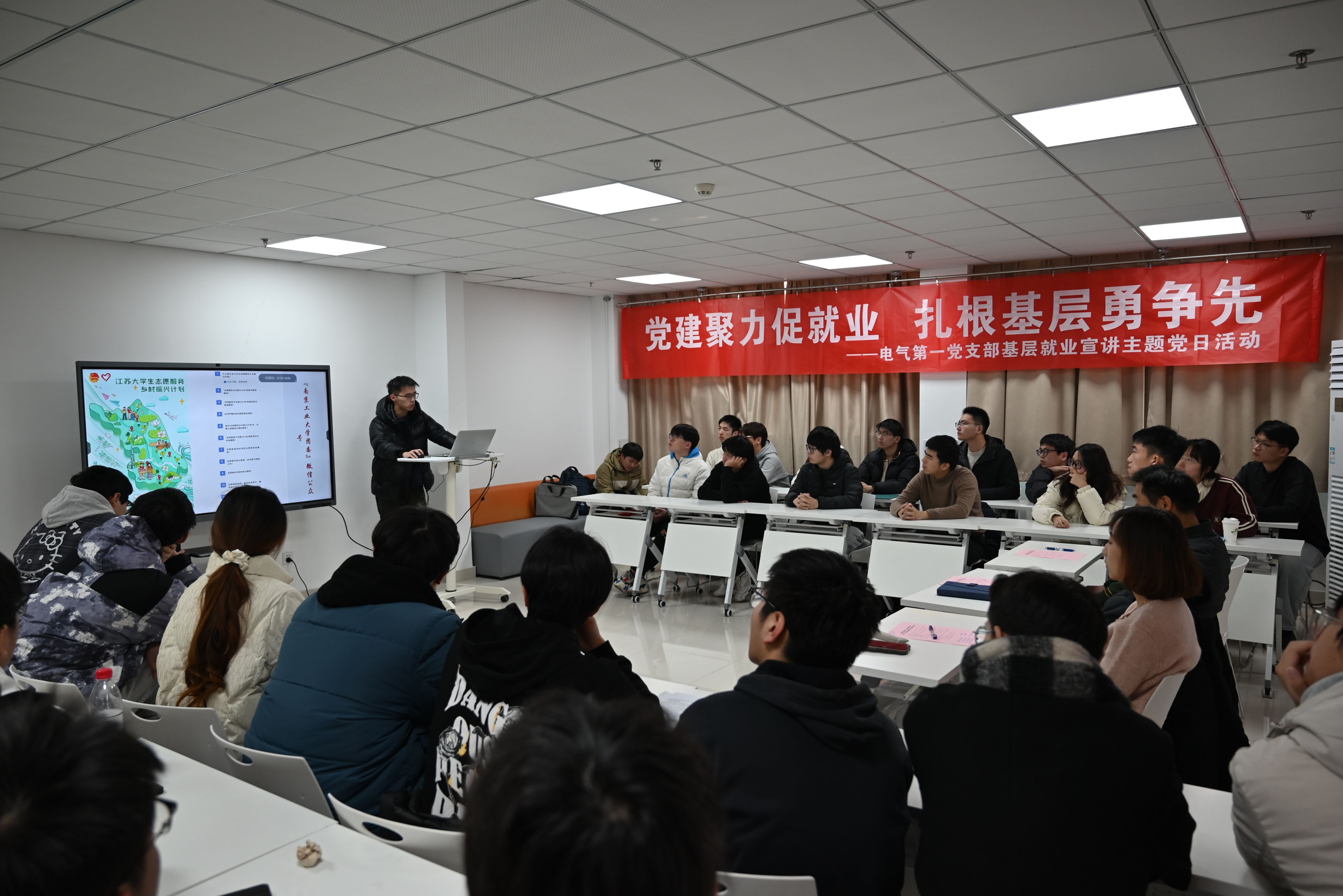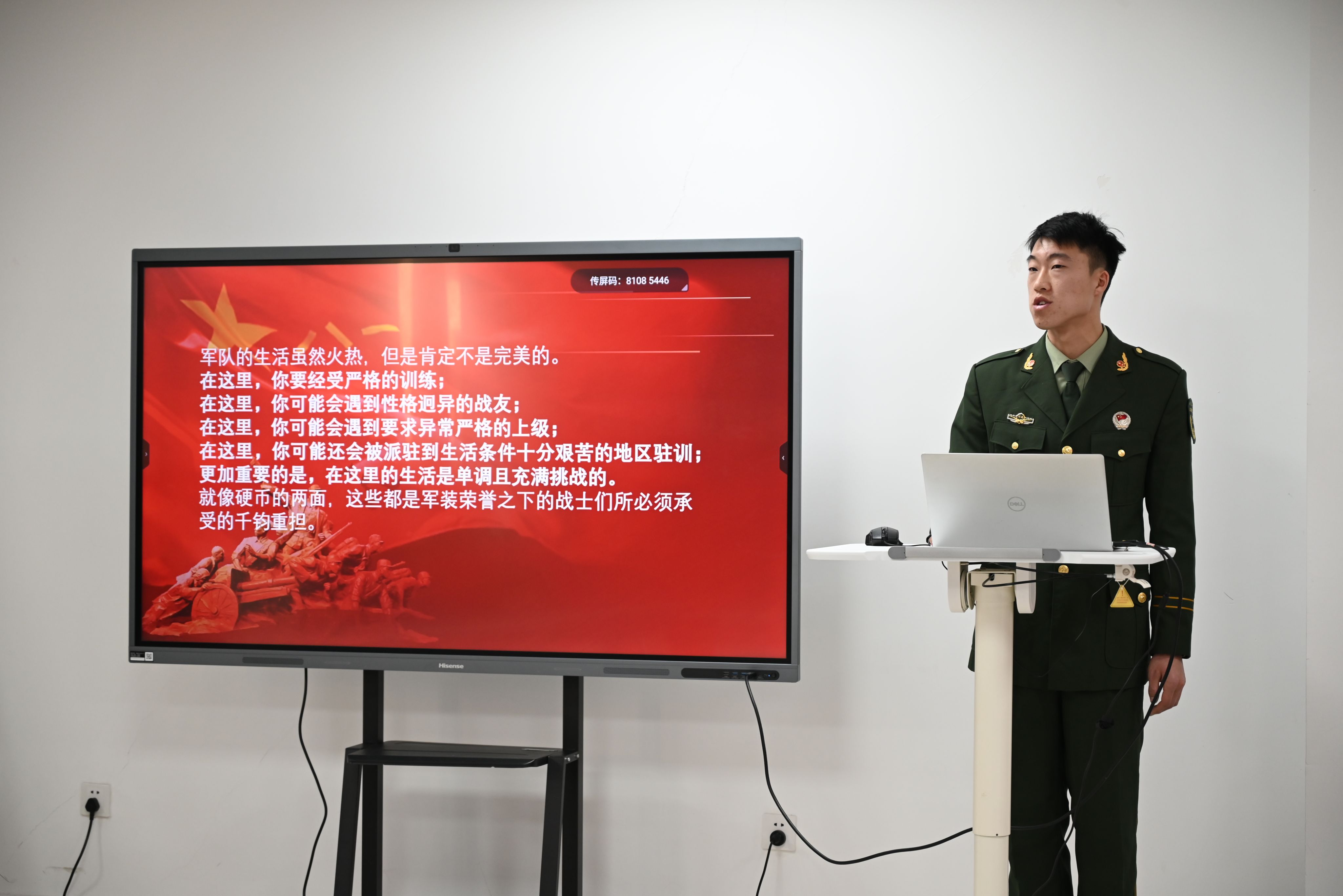活动中,支部书记从25届电气专业就业率入手,简要分析了当前的就业形势。党员张寒、朱恒分别从老员工村官、三支一扶、西部计划等方面介绍基层就业政策和相关报考流程。随后,司宇航同学为大家详细介绍了当兵入伍的流程、待遇以及退役后的就业保障等方面的政策,让大家对军旅生活有了更加全面和深入的了解。活动现场,通过视频连线的方式,22届员工叶中意也分享了自己的基层就业经验。