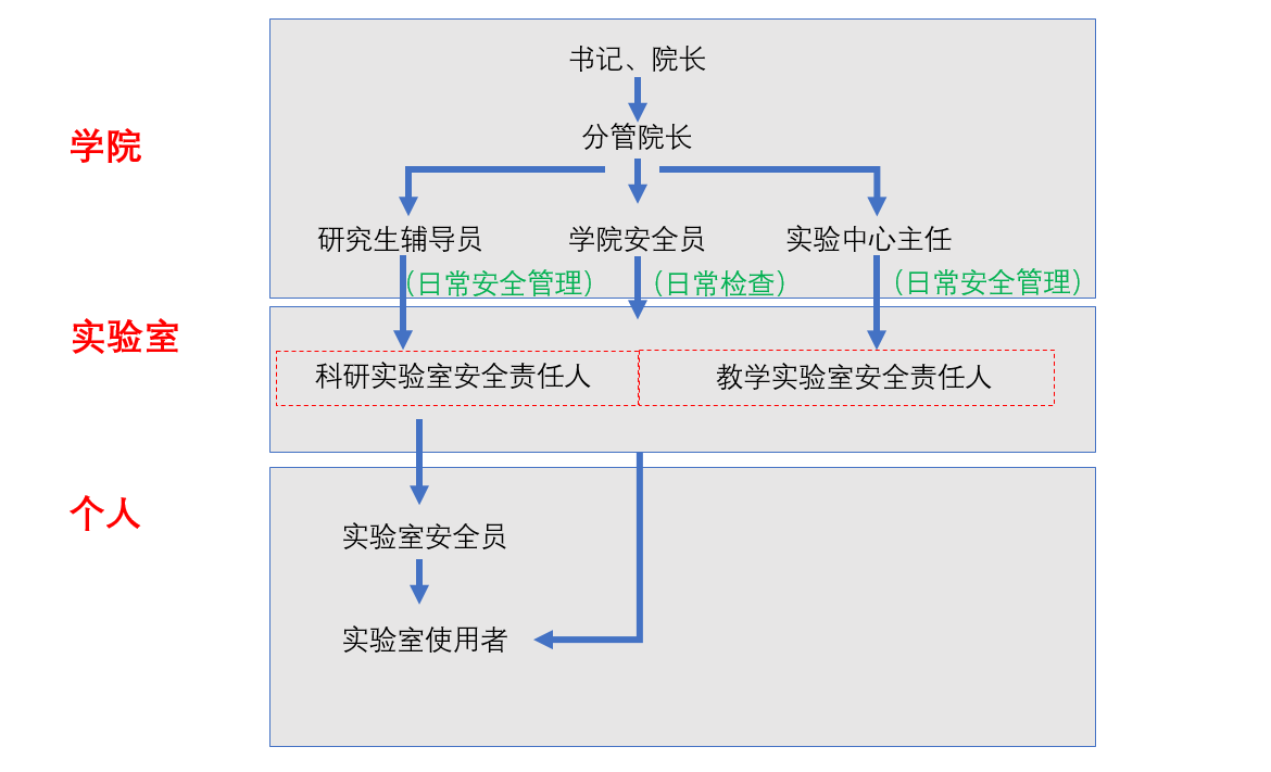 第三条 坚持“谁使用、谁负责,谁管理、谁负责”的原则。在校、二级单位、实验室三级联动的实验室安全工作责任体系基础上,公司实验室安全管理工作实行公司、实验室、个人三级责任制,各部门和广大教职工都要对所辖所管所用的实验室安全负责。