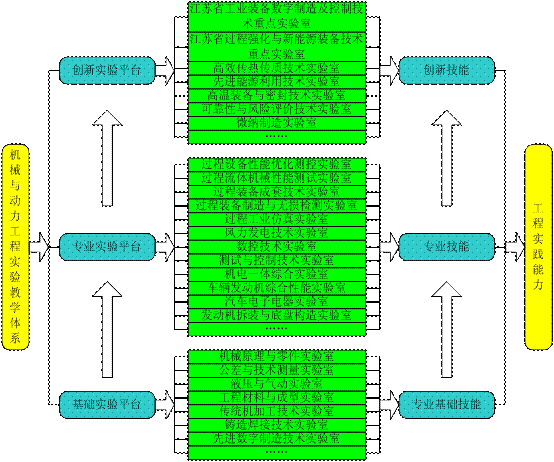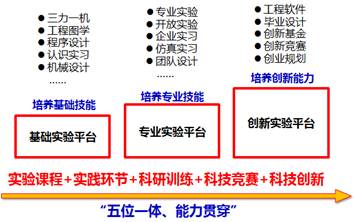 通过长期的研究与探索,中心结合公司“综合性、研究型、全球化”的办学理念,从机械与动力类专业教学的特点出发,以“知识—能力—素质”为主线,面向“基础实验技能、专业实验技能和创新创业能力”培养的要求,以工业装备设计原理为牵引,制造工艺与性能评价为基础,工程能力训练为重点的理工融合大机械类的“五位一体、能力贯穿”实验教学体系。